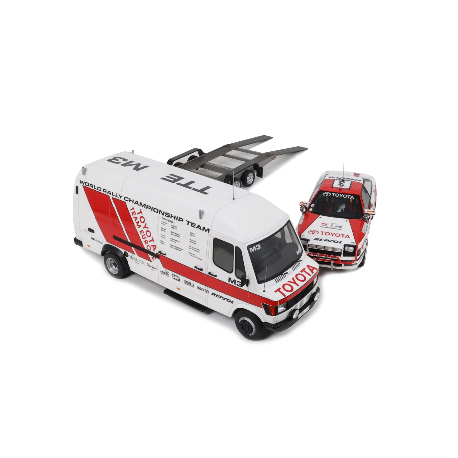 Modèle : PACK MERCEDES BENZ T1 ASSISTANCE + TOYOTA CELICA ST 165 GR.A + REMORQUE PORTE VOITURE